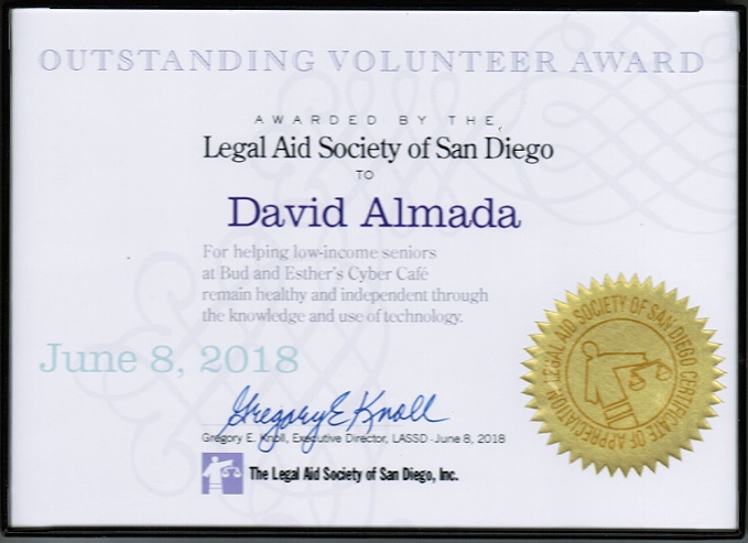 LEGAL AID SOCIETY OF SAN DIEGO CERTIFICATE OF APPRECIATION