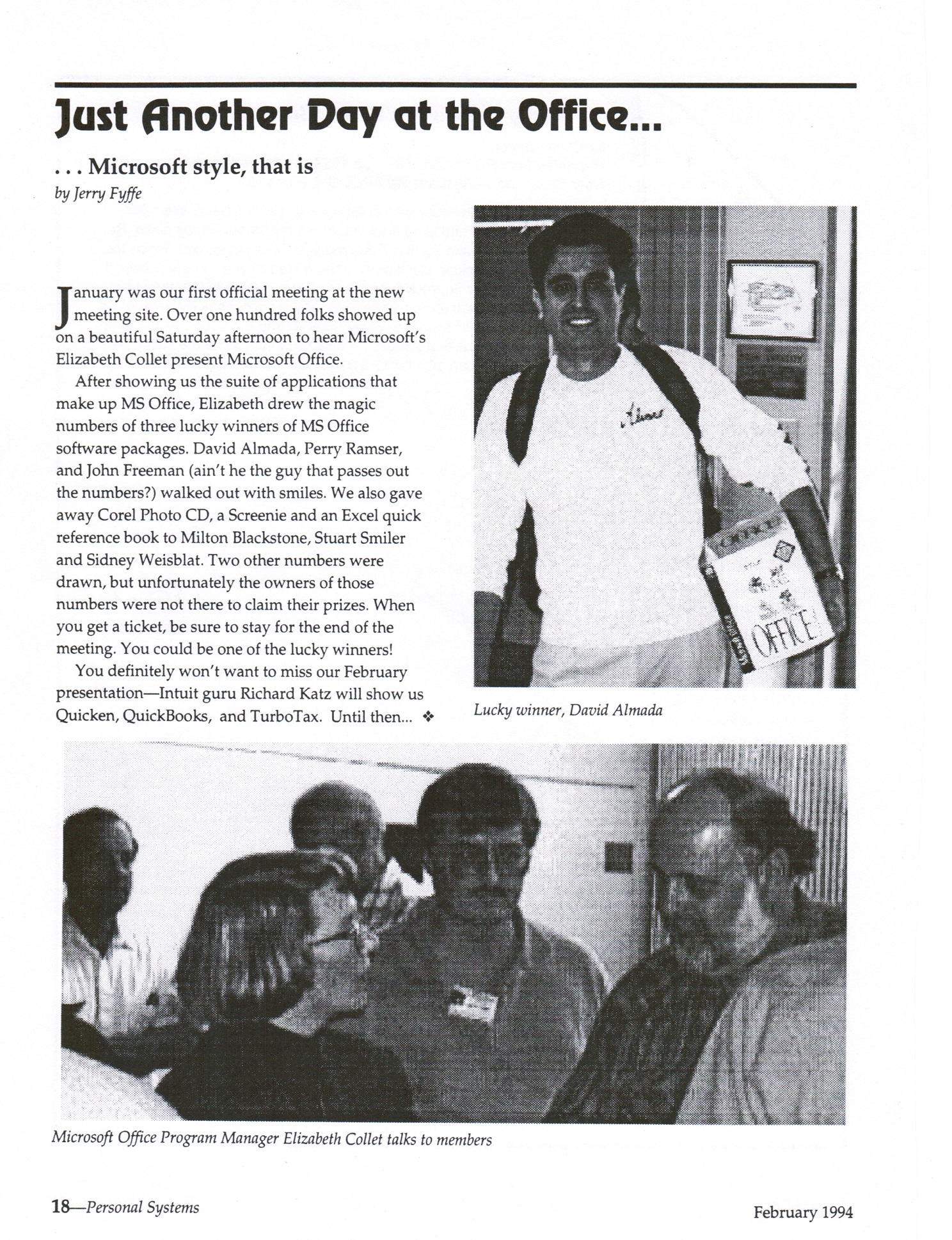 You definitely won’t want to miss our February presentation – Intuit guru Richard Katz will show us Quicken, QuickBooks, and TurboTax. Until then…